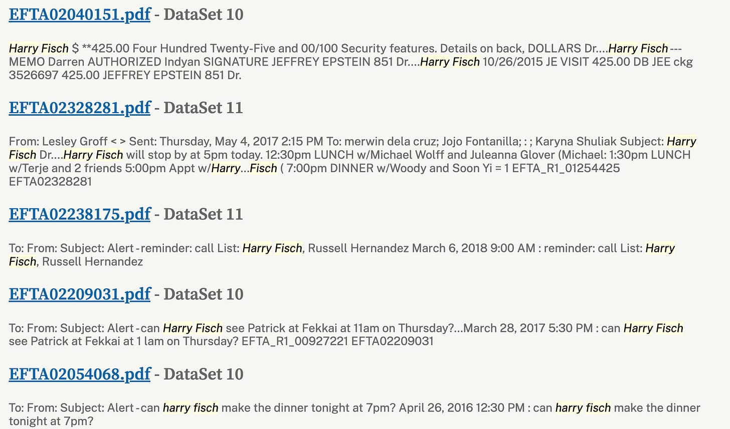Now, Dr. Harry Fisch, a male fertility urologist, appears 606 times in the DOJ documents. Six hundred and six. House calls. Gifts. A second urologist, Dr. Darius Paduch, consulted simultaneously. Why does a man supposedly running a sex trafficking operation need two reproductive specialists on speed dial?