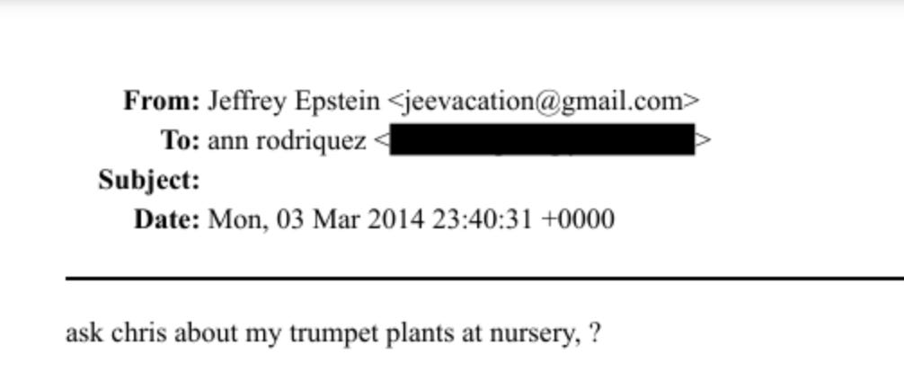 The same drug listed alongside LSD, heroin, and mescaline in the Senate Intelligence Committee’s MKUltra report. The same drug derived from angel’s trumpet plants - which Epstein specifically asked about in email (Ref: EFTA00984429) to his ranch manager: “Ask Chris about my trumpet plants at nursery.”