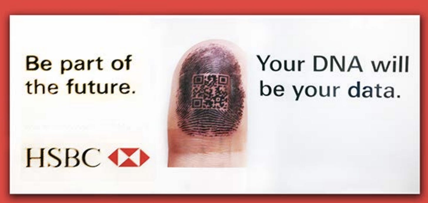 HSBC - whose former CEO Gabriel Perahia and director Clive Bannister both appear in Epstein’s black book - ran a public ad campaign with the tagline: “Your DNA will be your data.”